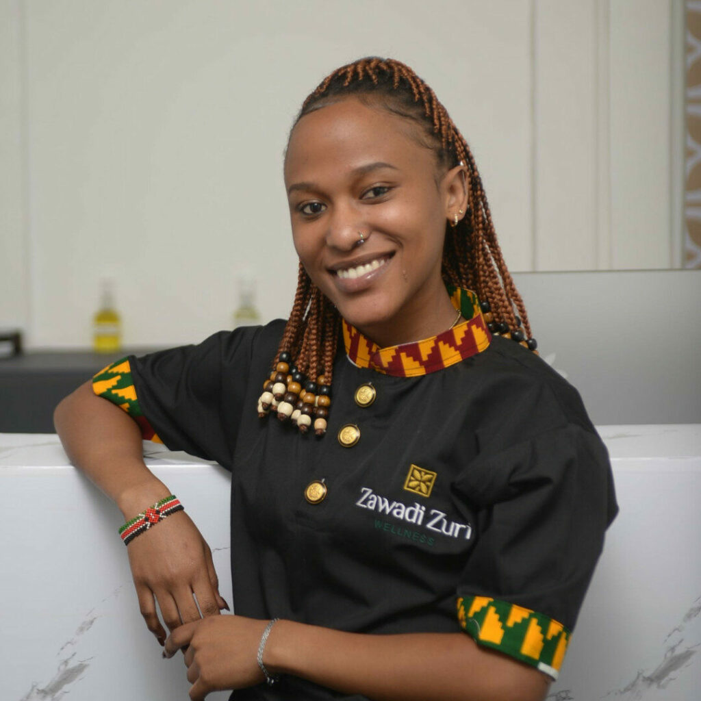 Warm, organized, and welcoming, Joy is the first face our guests meet at Zawadi Zuri Wellness. With her calm charm and professionalism, she ensures every client feels seen, valued, and beautifully cared for from the moment they walk in.